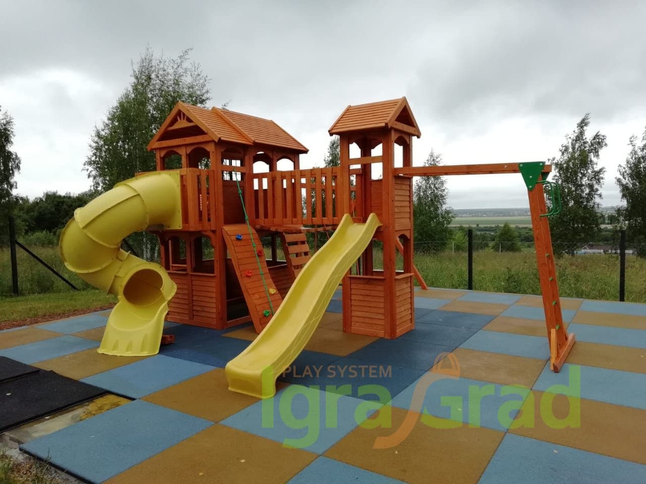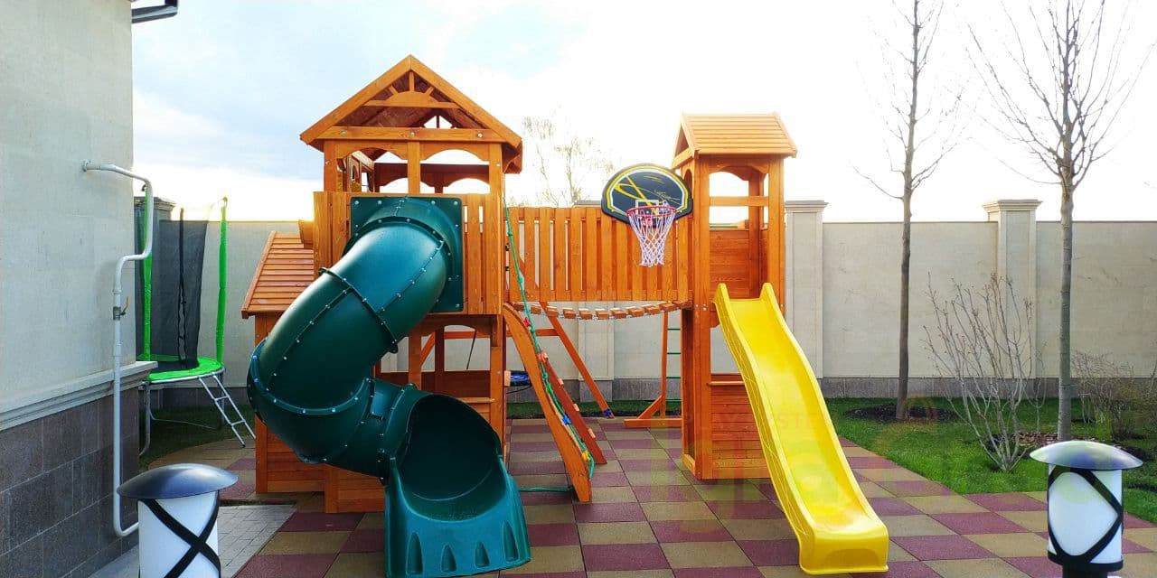 Детская площадка для дачи "Клубный домик Макси с трубой" включает: