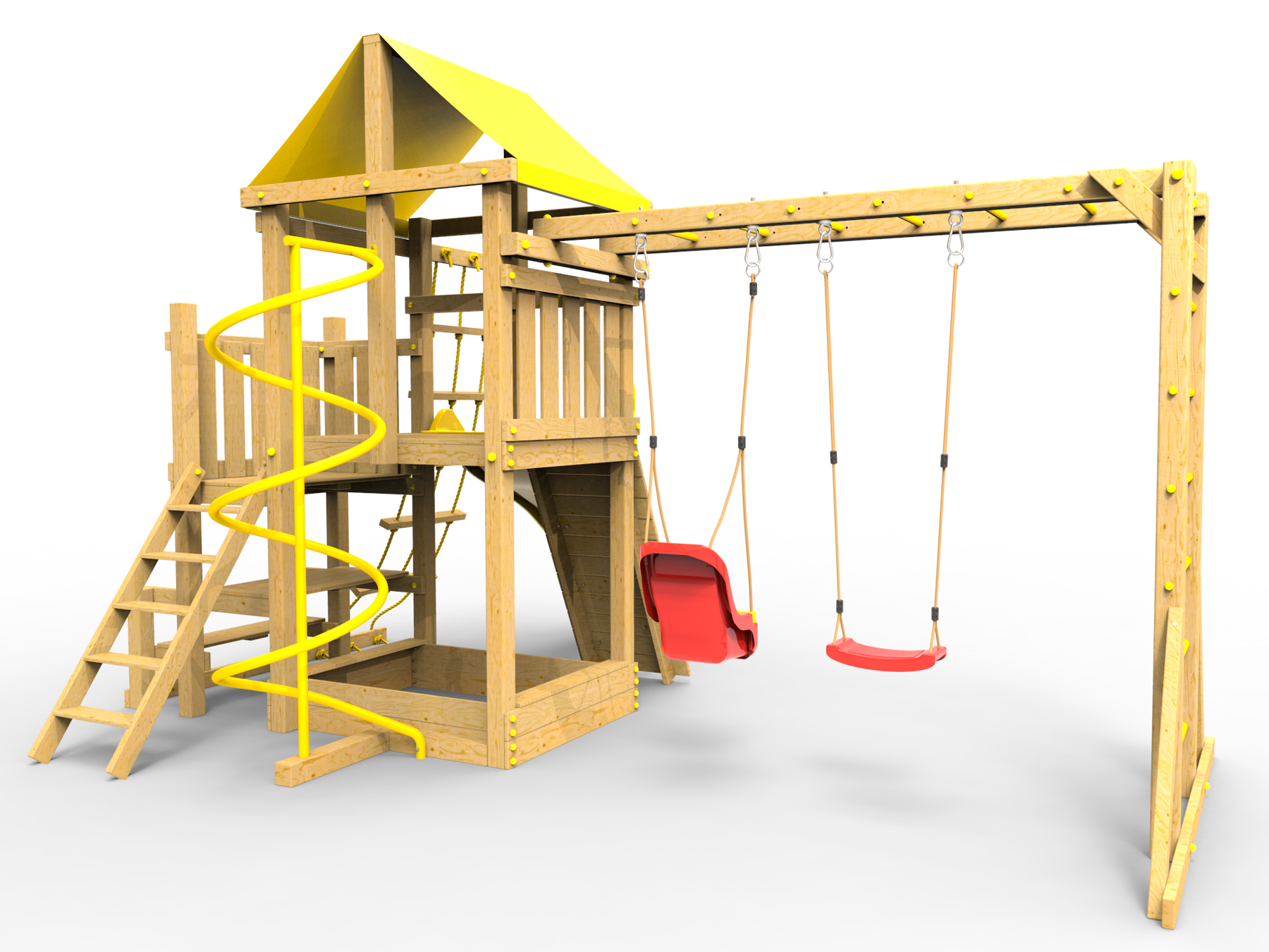 ● деревянная крыша ● трап 2м с канатом ● поручни для лестницы ● диван на цепях двухместный ● столик в песочницу