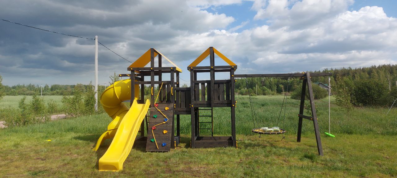Обращаем Ваше внимание, что фактический цвет детской площадки может отличаться от представленных фото на сайте. Специфика окраски нетоксичными пропитками и красителями допускает отклонения в цветовой гамме отгружаемых изделий. Также обратите внимание, что фактический цвет может отличаться из-за цветопередачи устройства на котором Вы смотрите фото.