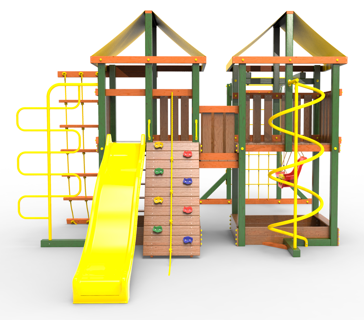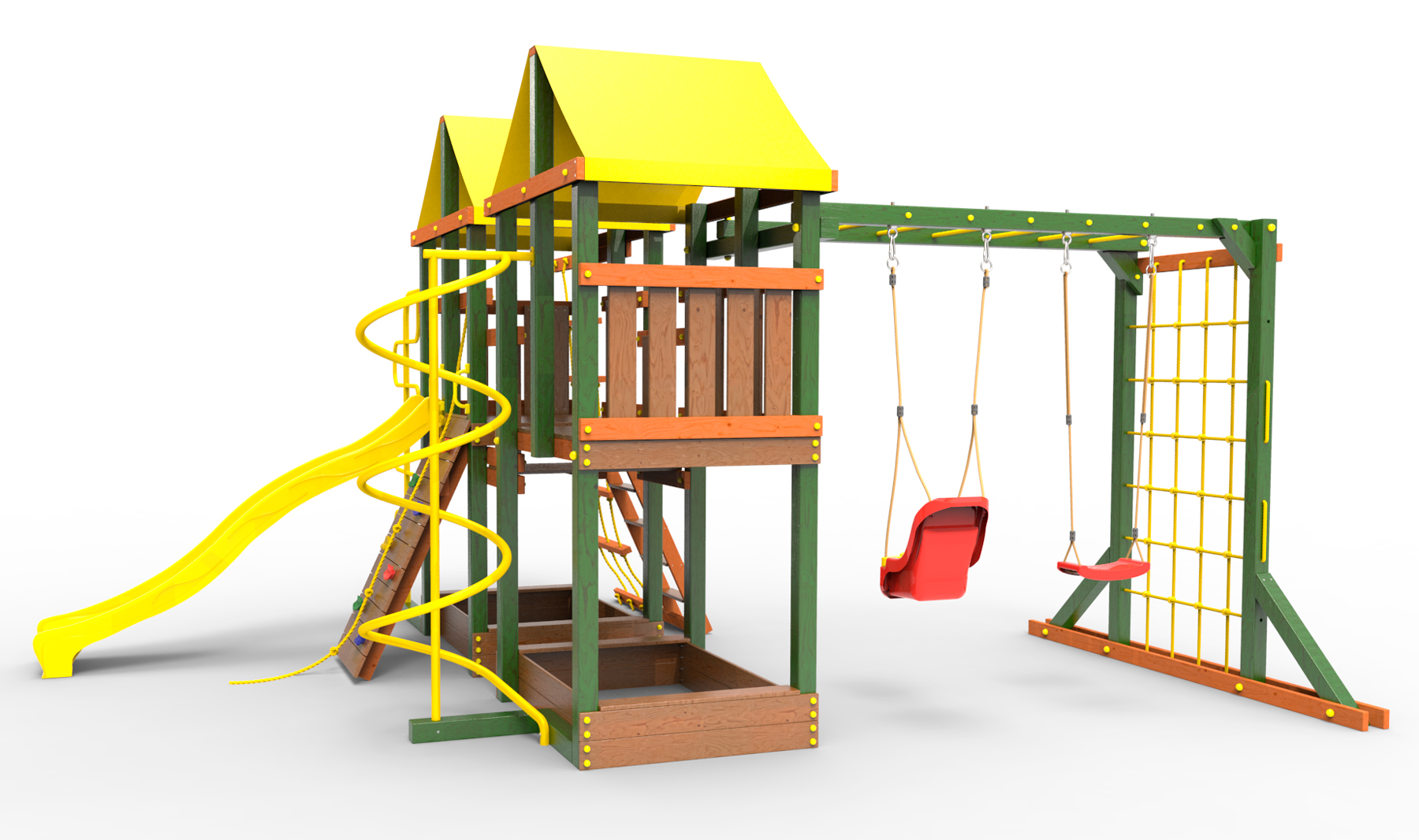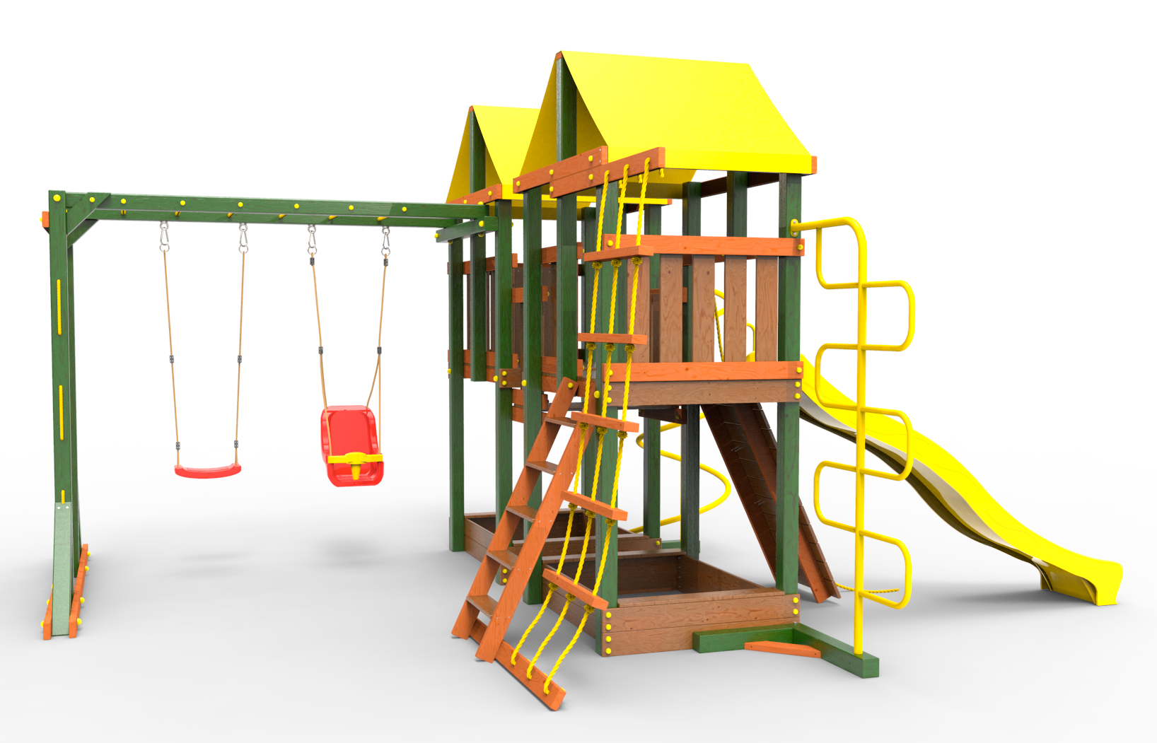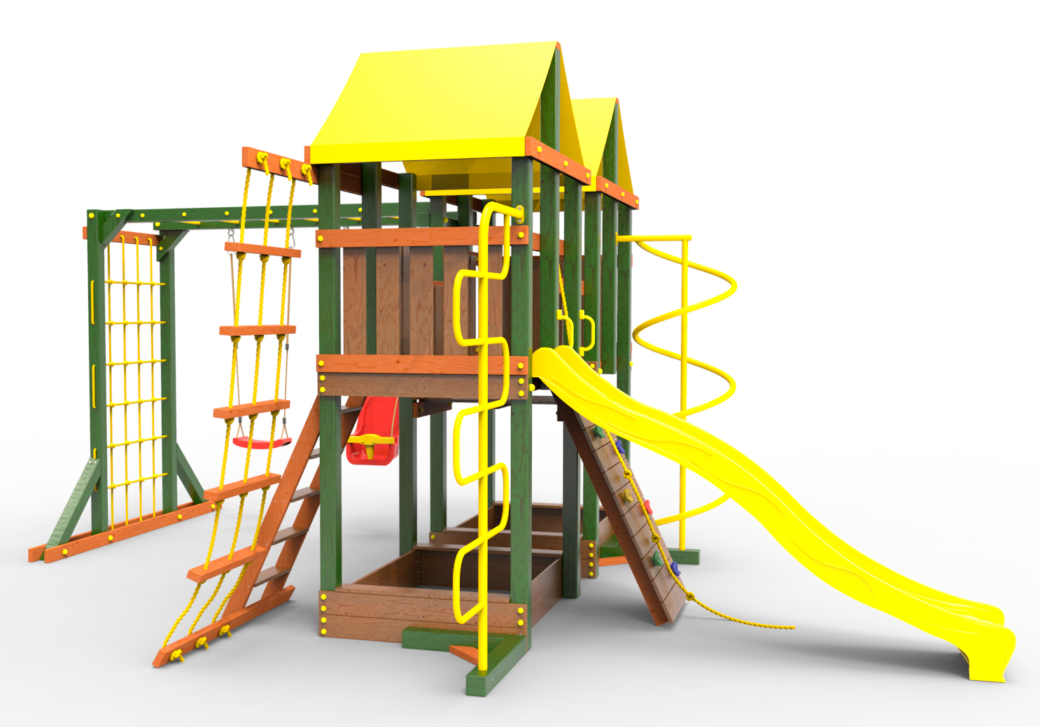 Обращаем Ваше внимание, что фактический цвет детской площадки может отличаться от представленных фото на сайте. Специфика окраски нетоксичными пропитками и красителями допускает отклонения в цветовой гамме отгружаемых изделий. Также обратите внимание, что фактический цвет может отличаться из-за цветопередачи устройства на котором Вы смотрите фото.