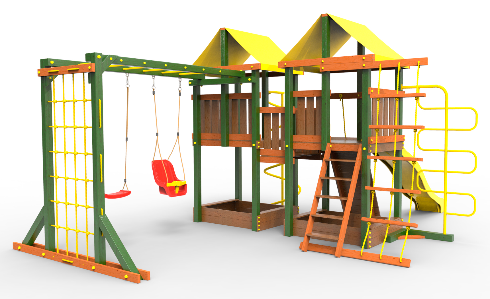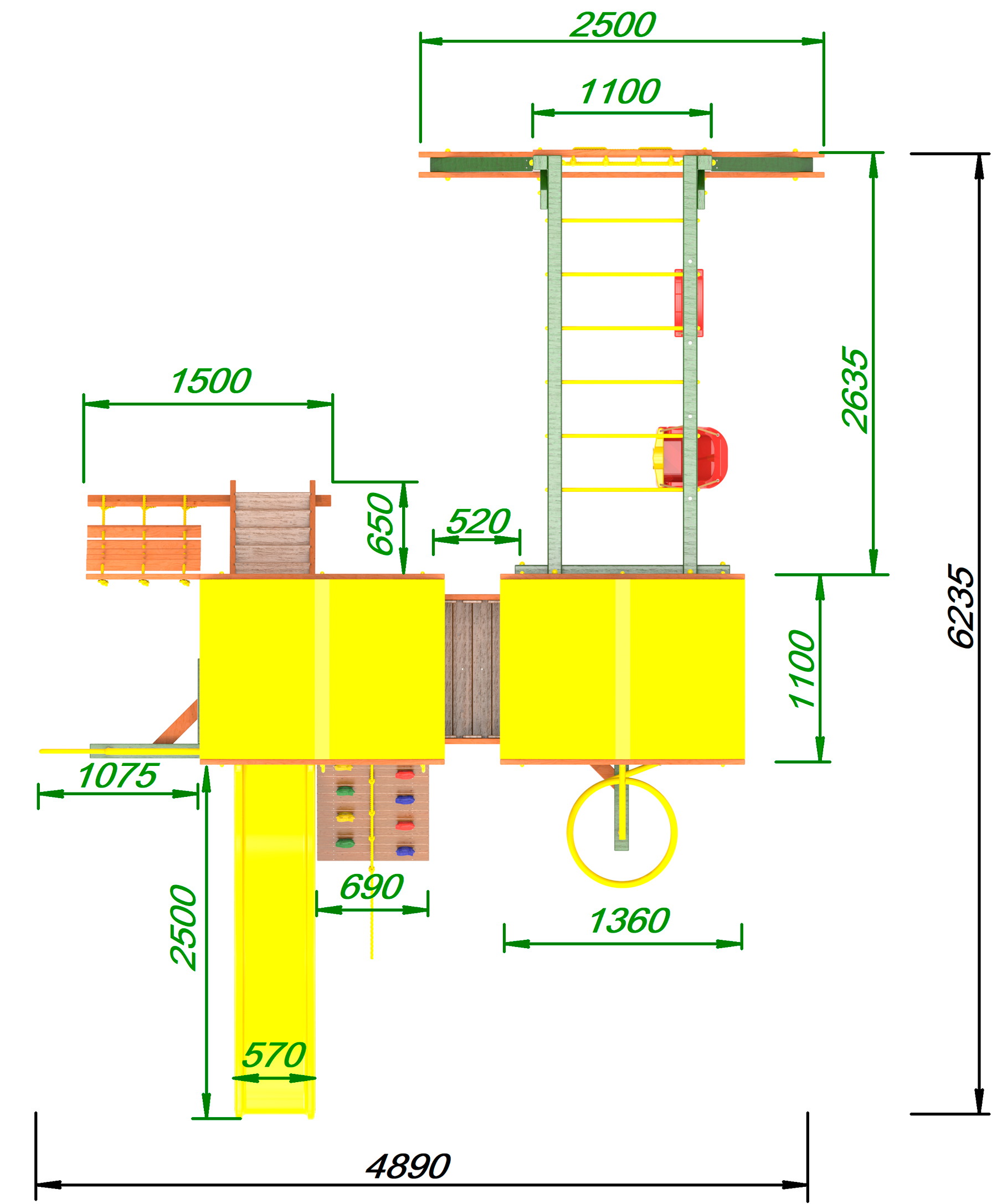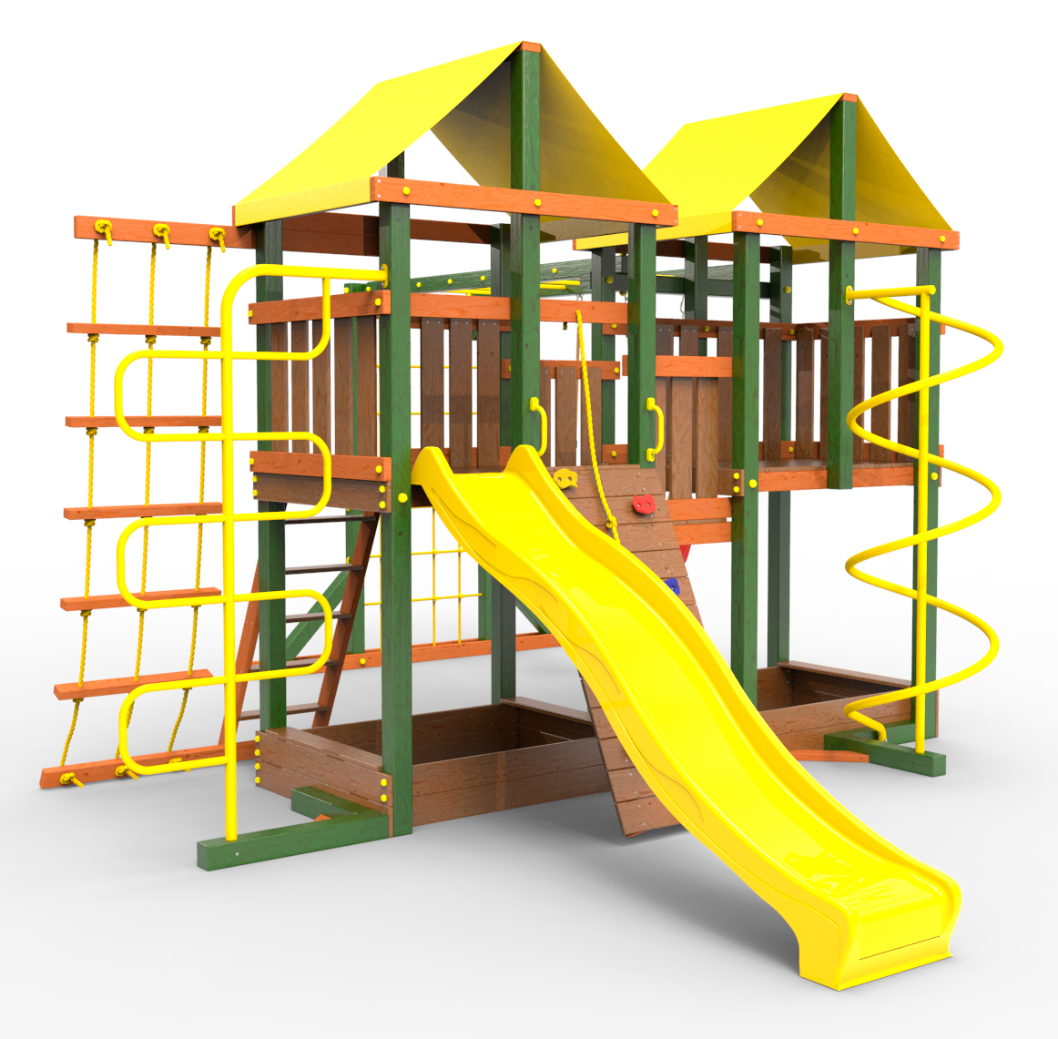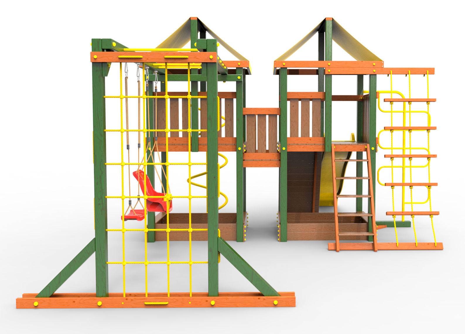 Обращаем Ваше внимание, что фактический цвет детской площадки может отличаться от представленных фото на сайте. Специфика окраски нетоксичными пропитками и красителями допускает отклонения в цветовой гамме отгружаемых изделий. Также обратите внимание, что фактический цвет может отличаться из-за цветопередачи устройства на котором Вы смотрите фото.