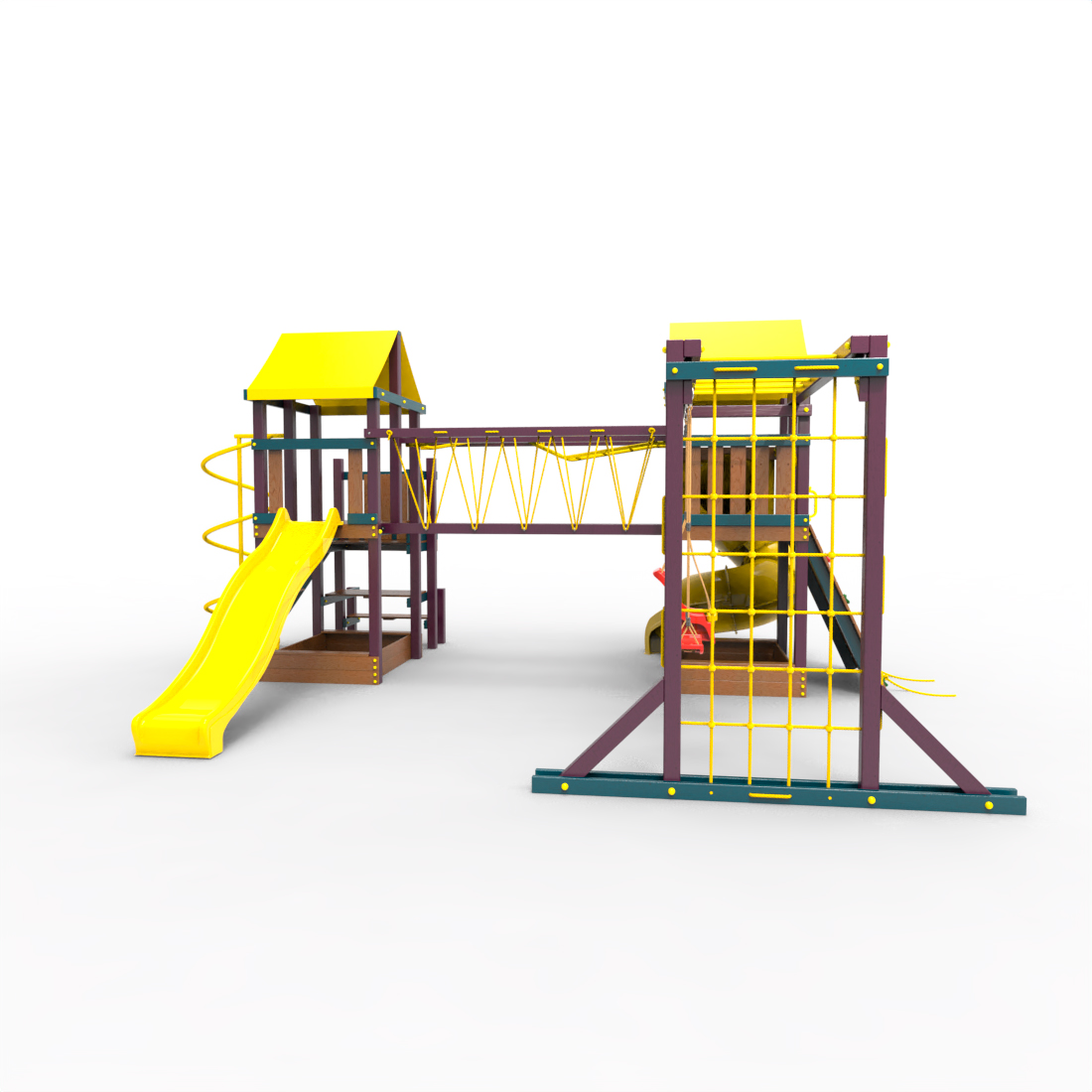| Комплектация | Два домика|Песочница|Лестница|Шторм-трап|Скалодром|Рукоход|Руфер|Балкон|Столик с лавочками|Подвесной мост|Горка|Спираль|Сеть для лазания|Качели|Заливная горка|ЗигЗаг|Переправа |