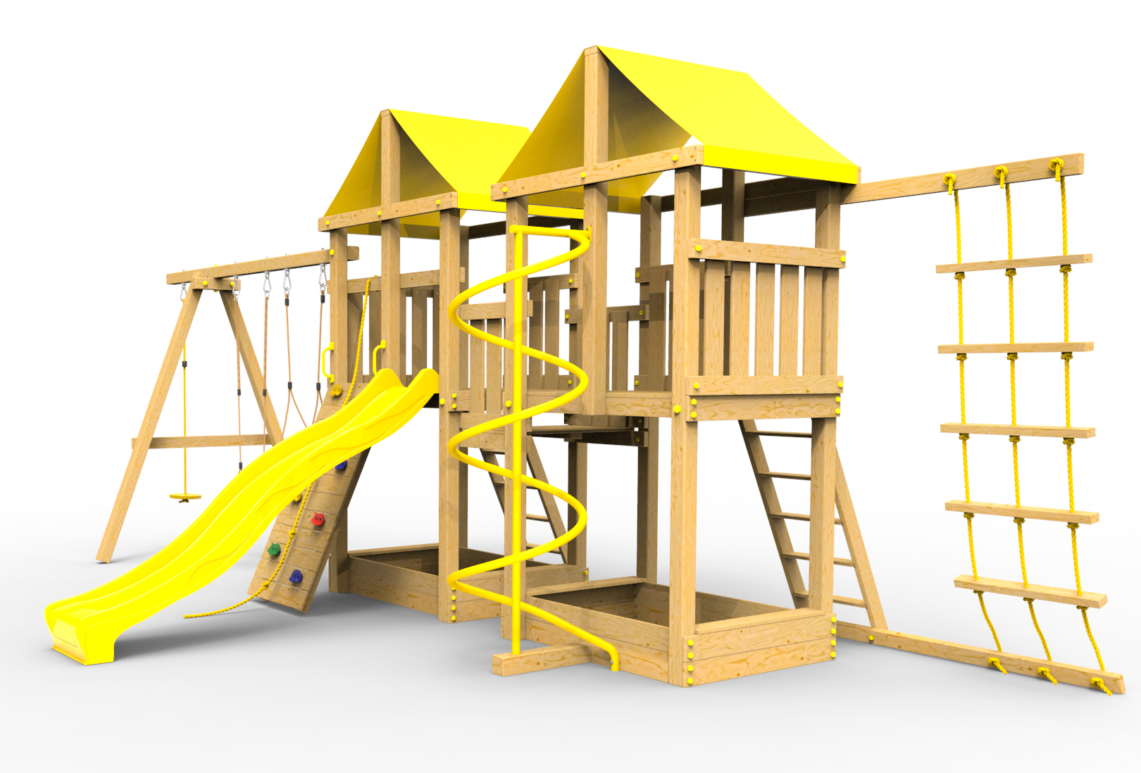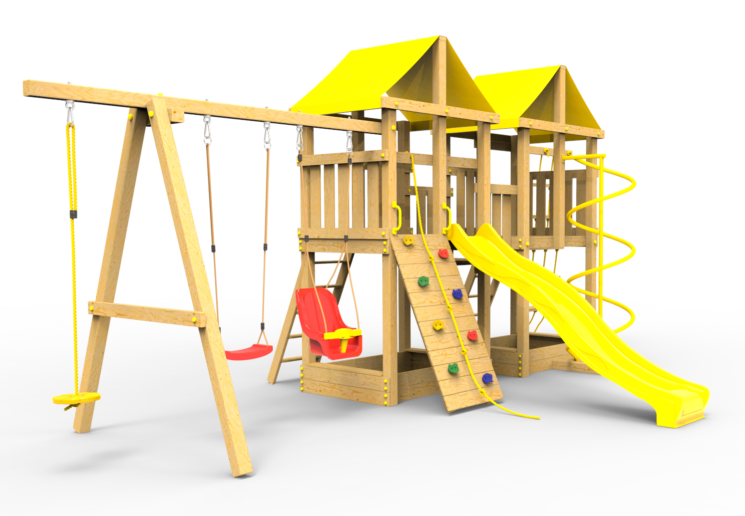 Обращаем Ваше внимание, что фактический цвет детской площадки может отличаться от представленных фото на сайте. Специфика окраски нетоксичными пропитками и красителями допускает отклонения в цветовой гамме отгружаемых изделий. Также обратите внимание, что фактический цвет может отличаться из-за цветопередачи устройства на котором Вы смотрите фото.