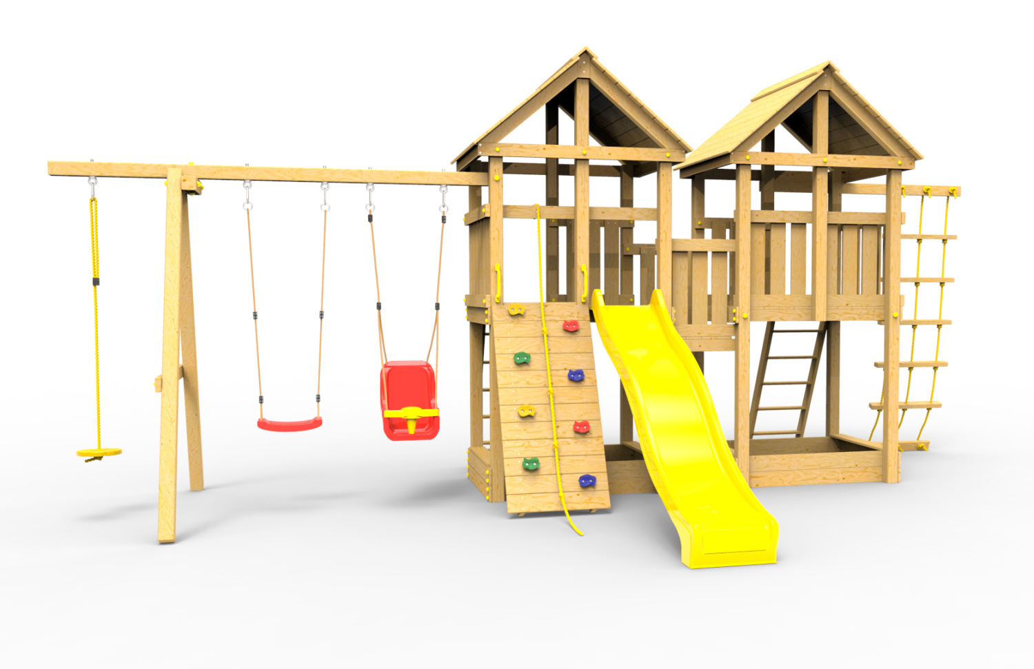 Обращаем Ваше внимание, что фактический цвет детской площадки может отличаться от представленных фото на сайте. Специфика окраски нетоксичными пропитками и красителями допускает отклонения в цветовой гамме отгружаемых изделий. Также обратите внимание, что фактический цвет может отличаться из-за цветопередачи устройства на котором Вы смотрите фото.