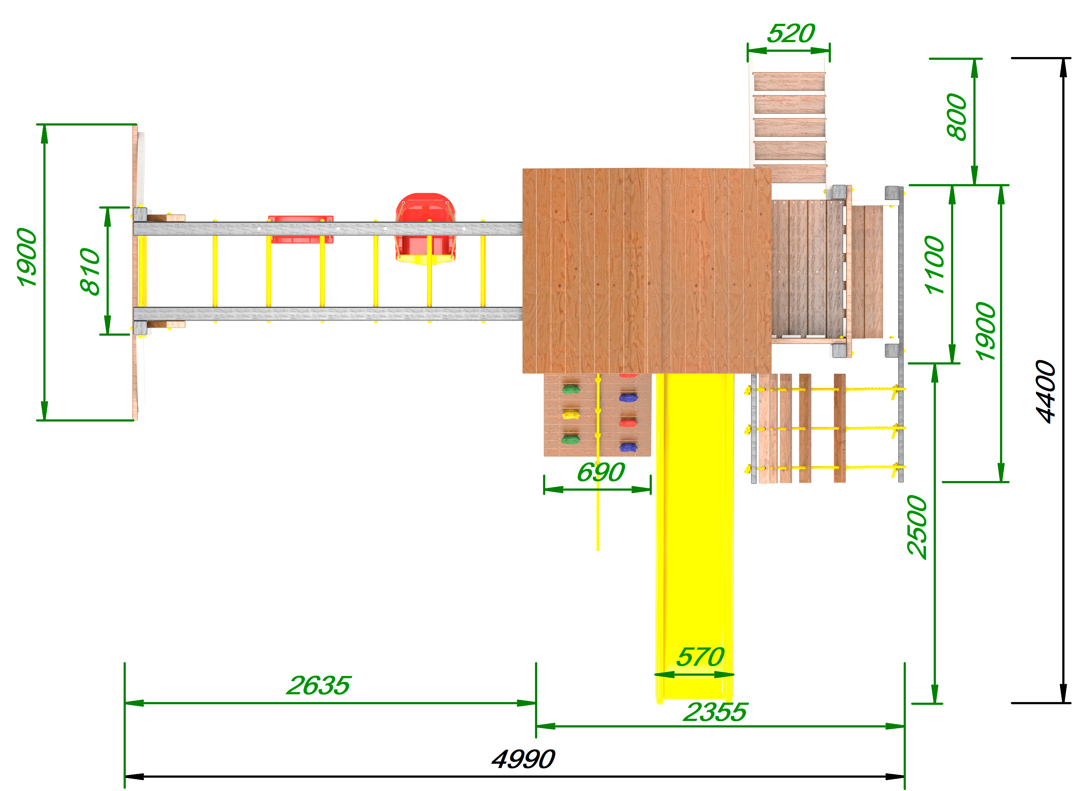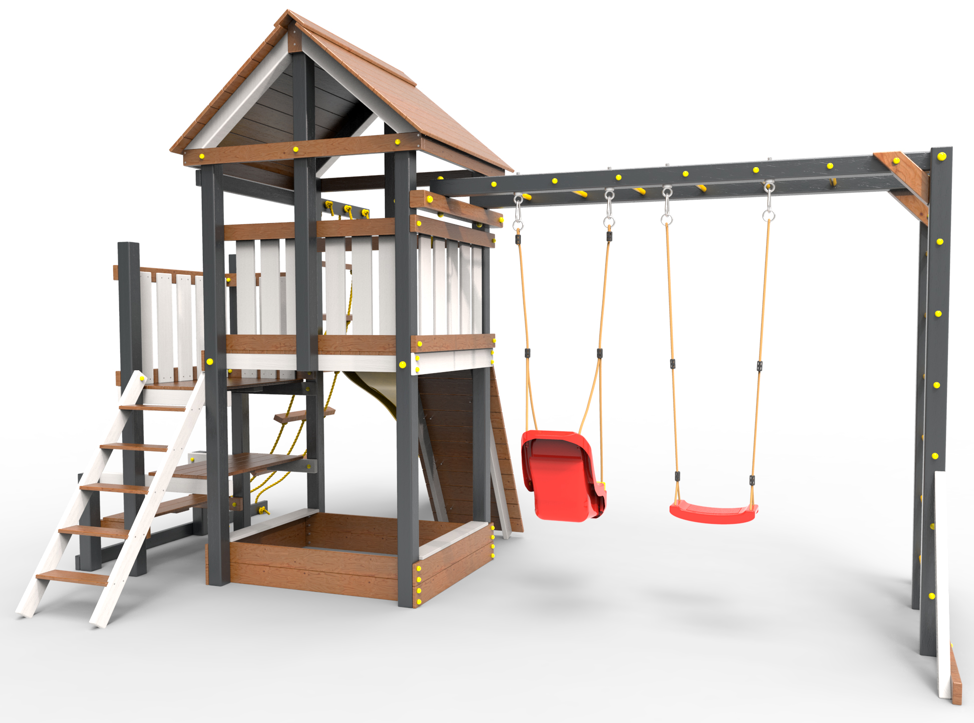 Обращаем Ваше внимание, что фактический цвет детской площадки может отличаться от представленных фото на сайте. Специфика окраски нетоксичными пропитками и красителями допускает отклонения в цветовой гамме отгружаемых изделий. Также обратите внимание, что фактический цвет может отличаться из-за цветопередачи устройства на котором Вы смотрите фото.