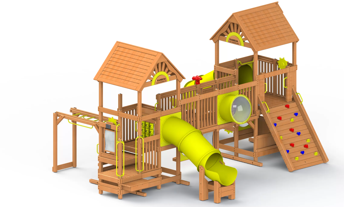 Игровая площадка для парка Рейнбоу 111А – настоящий рай для ребёнка любого возраста. Тут можно кататься с горки, играть в крестики – нолики, рисовать, тренировать силу выносливость и даже почувствовать себя настоящим капитаном дальнего плавания! Большое количество игровых зон гарантирует отсутствие скуки на площадке, а высокое качество материалов и специальные инженерные решения делают этот игровой комплекс для парка доступным и безопасным даже для детей с ограниченными возможностями. Данная серия предназначена для использования в парках, скверах, жилых комплексах и других общественных местах с большой проходимостью. Коммерческая серия широко используется для благоустройства городских пространств по всему миру.