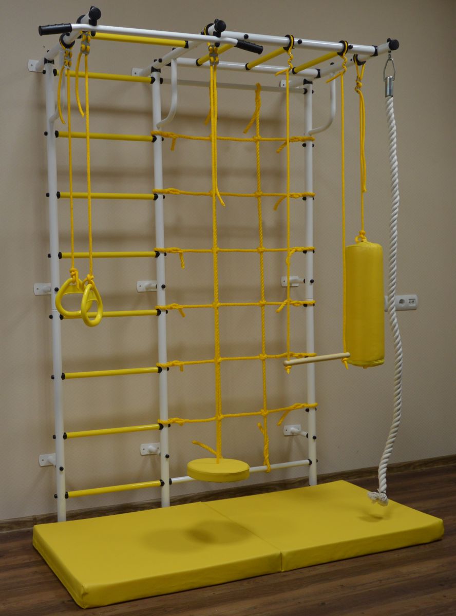 Канат, трапеция, кольца гимнастические, сетка для лазания, тарзанка, детская груша, мат гимнастический 1,6*0,66 кож/зам.